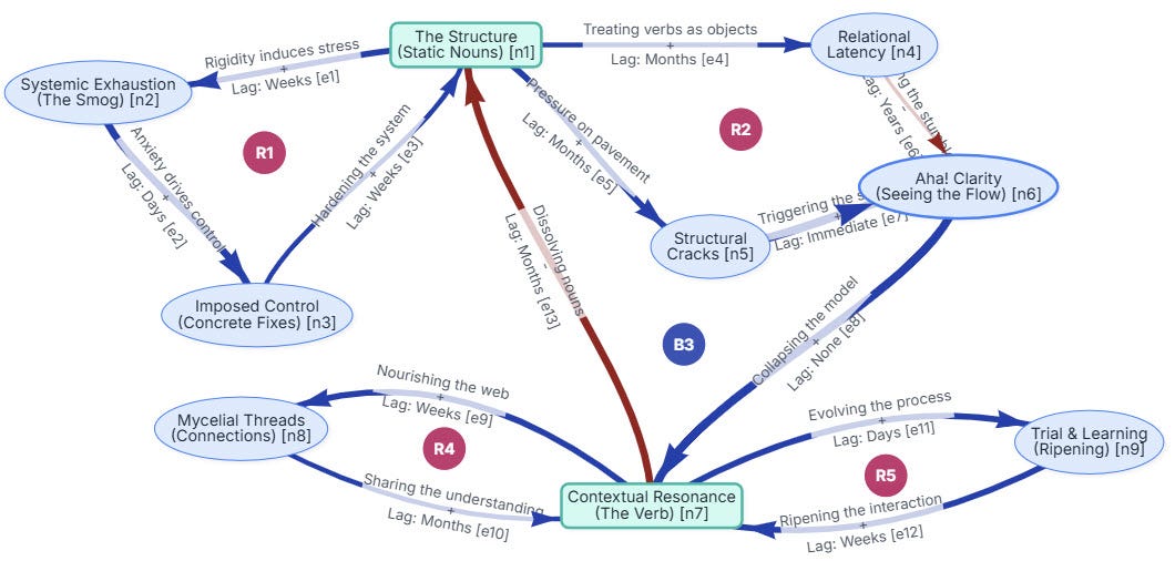 For the Pragmatists: The narrative highlights the reduction of Relational Latency. It frames “Systems Thinking” not as an extra task, but as a way to reduce the “Load-Bearing Delusions” that make daily work so exhausting.